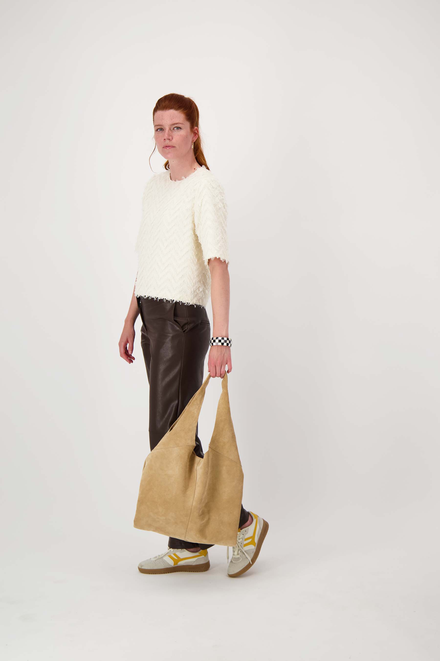 De Zusss suede schoudertas is een zachte, ruime schoudertas die perfect past bij een casual en stijlvolle look. Deze beige handtas uit de tassen collectie combineert een stoere uitstraling met een basic ontwerp, waardoor hij ideaal is voor dagelijks gebruik. De schoudertas is gemaakt van soepel suède, wat zorgt voor een warme uitstraling en een fijn gevoel. Dankzij het ruime formaat neem je gemakkelijk al je essentials mee, terwijl het zachte materiaal licht en comfortabel aanvoelt. Binnenin is de tas voorzien van een groot tussenvak met ritssluiting, zodat je jouw spullen overzichtelijk en veilig kunt opbergen. Een echte musthave in de collectie Tassen-Riemen van Zusss.