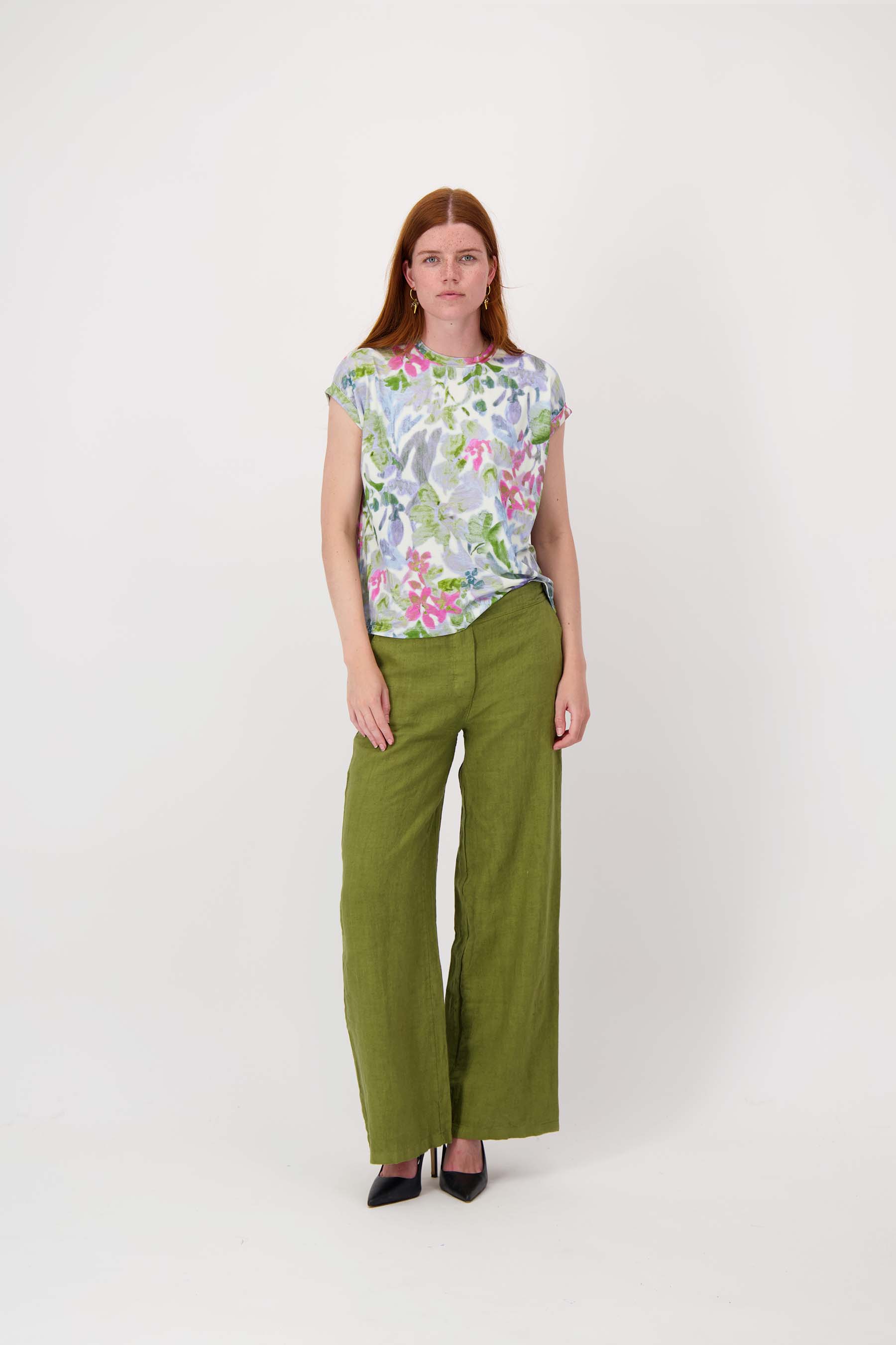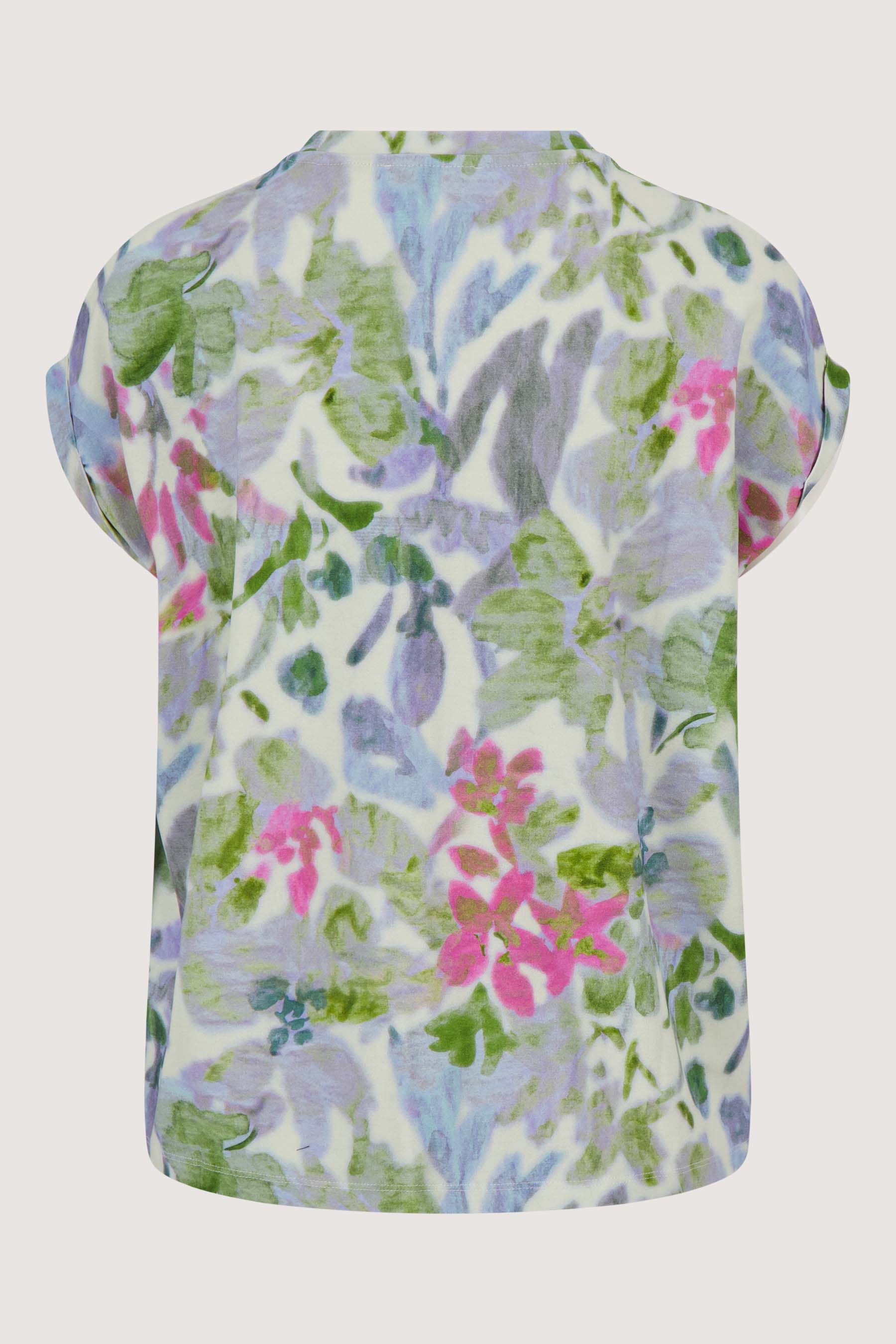 Deze Zusss T-shirt met bloem print is een vrolijke must-have voor je garderobe. De T-shirt met bloem print valt op door zijn zachte, aquarelachtige bloemenpatroon in een frisse off white kleur aangevuld met olive green en crispy pink accenten. De rustige, natuurlijke tinten geven elke outfit een speels en zomerproof karakter. Combineer deze comfortabele T-shirt met bloem print met je favoriete broek voor een casual en stijlvolle uitstraling. Voeg een vleugje vrolijkheid toe met deze charmante Zusss top!
