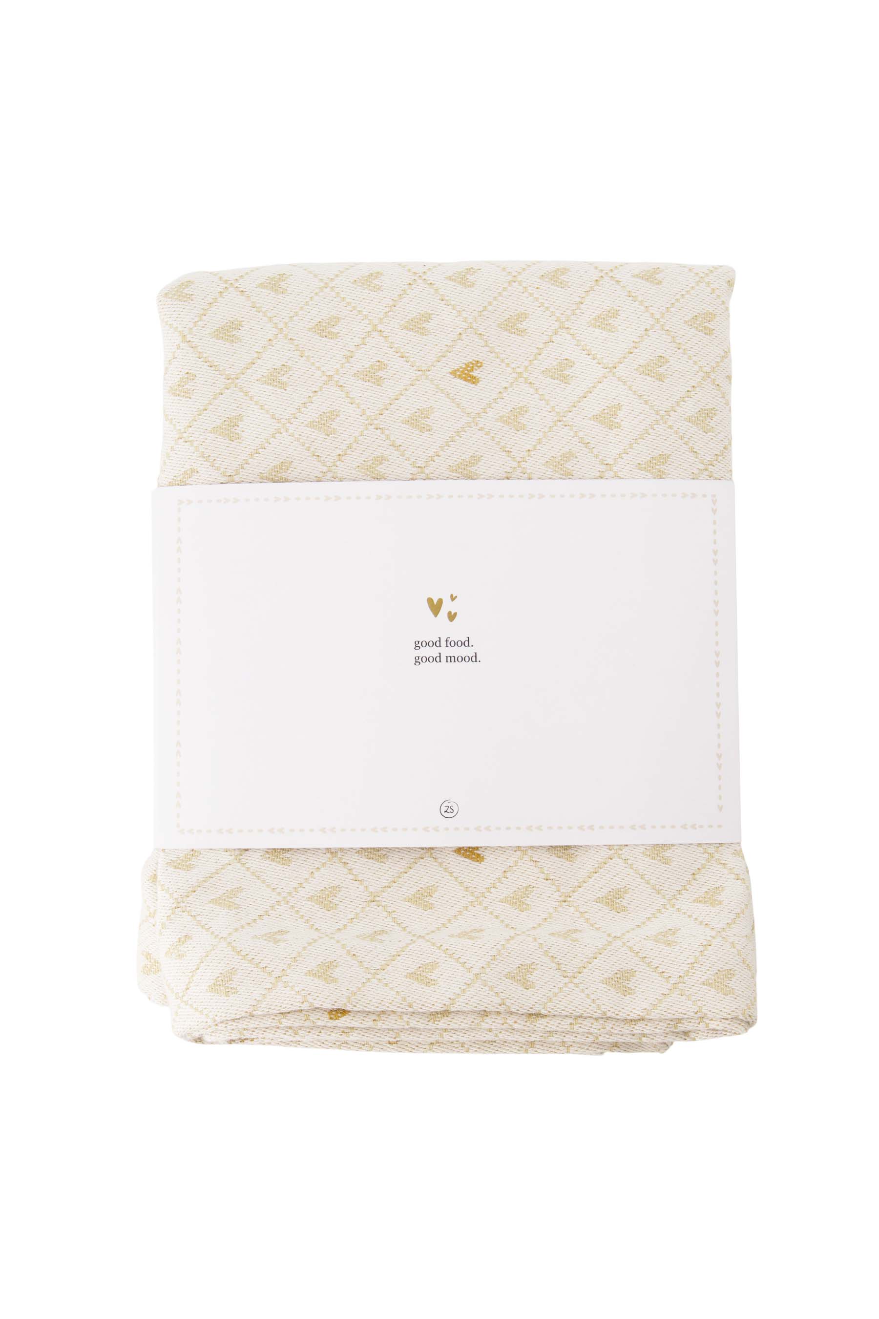 De Zusss tafelloper hartjes brengt warmte en sfeer in jouw keuken. Met een subtiel patroon van kleine hartjes in zand- en goudtinten op een witte basis, past deze tafelloper perfect binnen de keuken textiel categorie. De zachte, natuurlijke uitstraling maakt het een stijlvolle toevoeging aan elke eettafel. Deze tafelloper is ideaal om jouw tafel net dat beetje extra liefde te geven tijdens elke maaltijd. Combineer hem met andere keukenaccessoires voor een compleet en gezellig geheel.