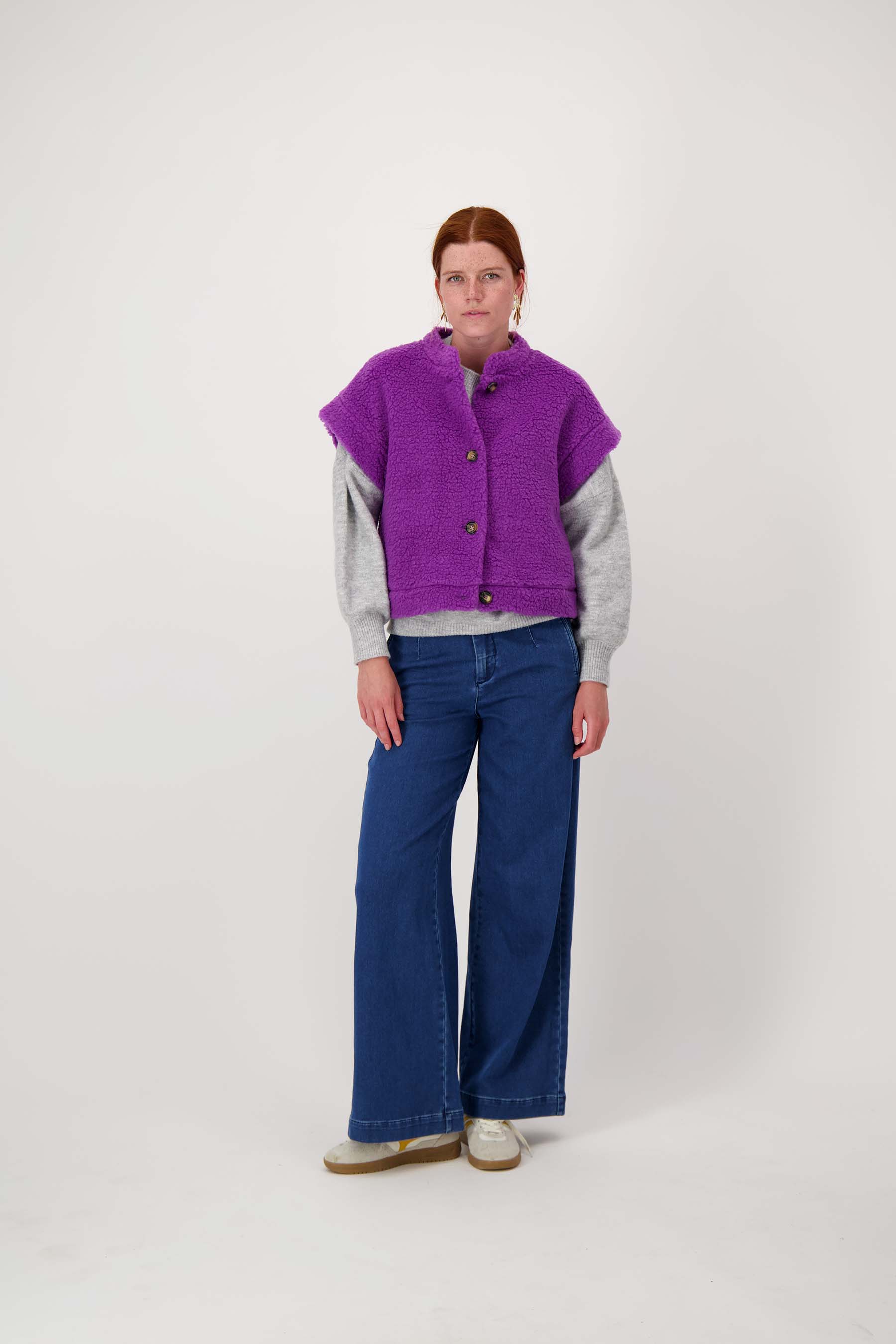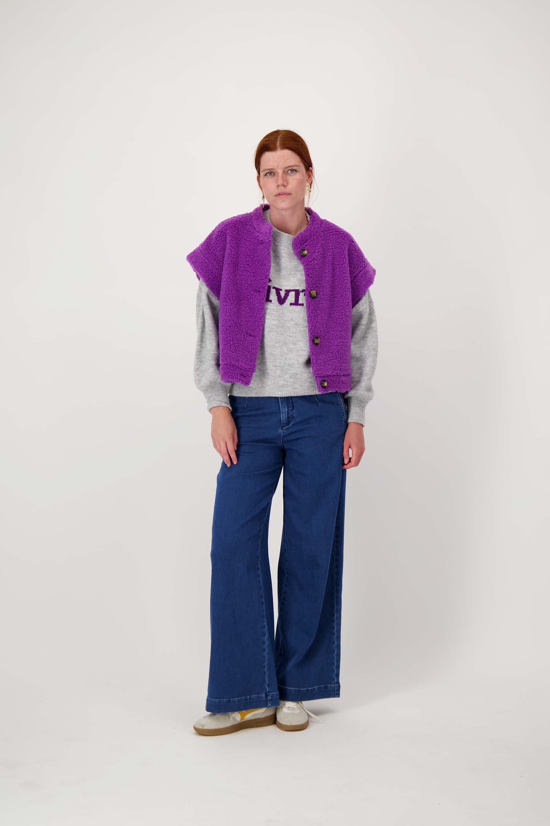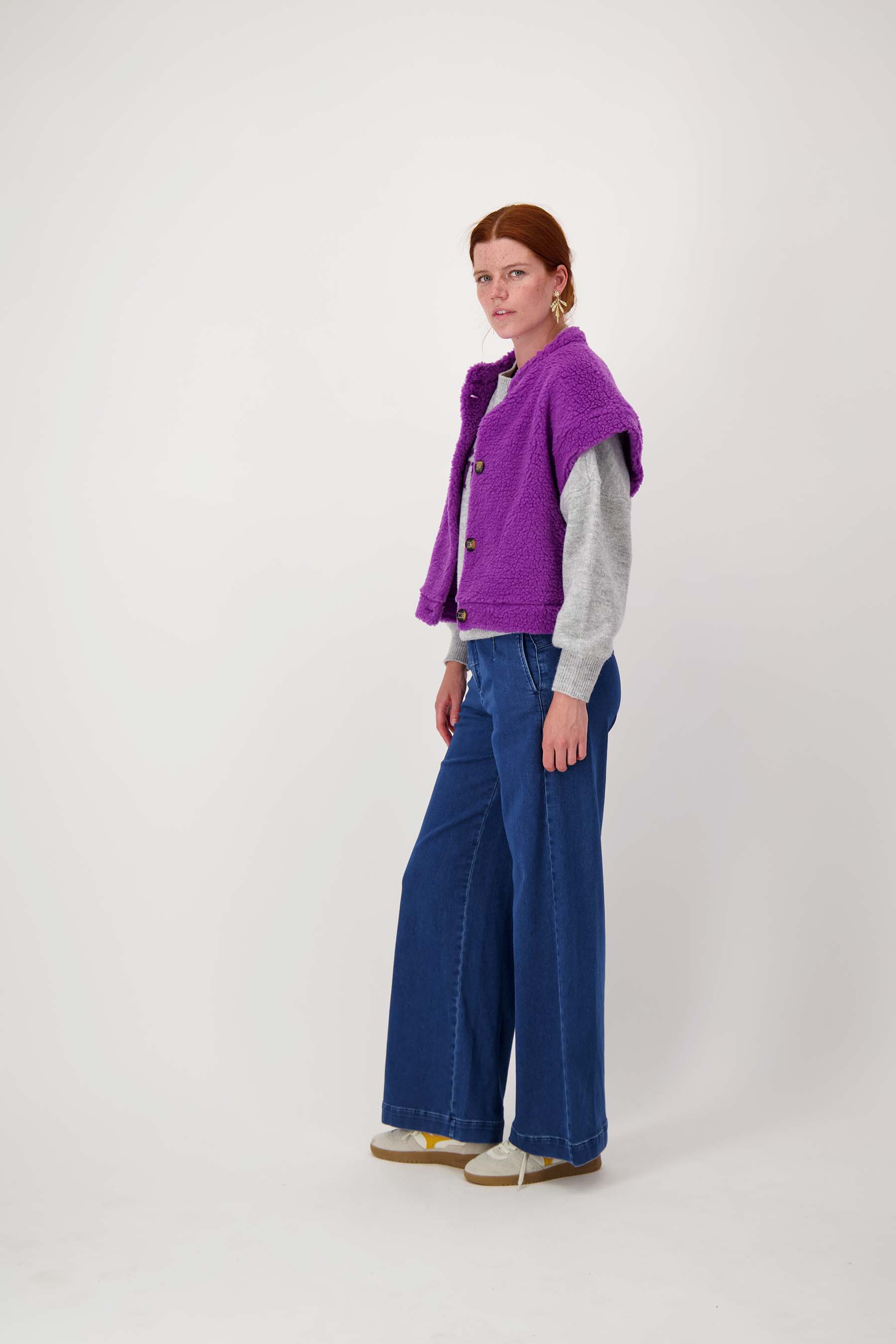 Dit Zusss teddy gilet kort is dé musthave voor wie houdt van comfort en stijl in één. Het korte gilet met knopen is gemaakt van een zachte, paarskleurige teddystof die warmte en gezelligheid uitstraalt. Door de stoere, korte mouwtjes draag je het gilet zowel binnen als buiten. Dit gilet past perfect binnen de kledingcategorie vesten en is ideaal voor een casual, unieke look. Combineer eenvoudig met andere basics voor een eigenzinnige uitstraling.