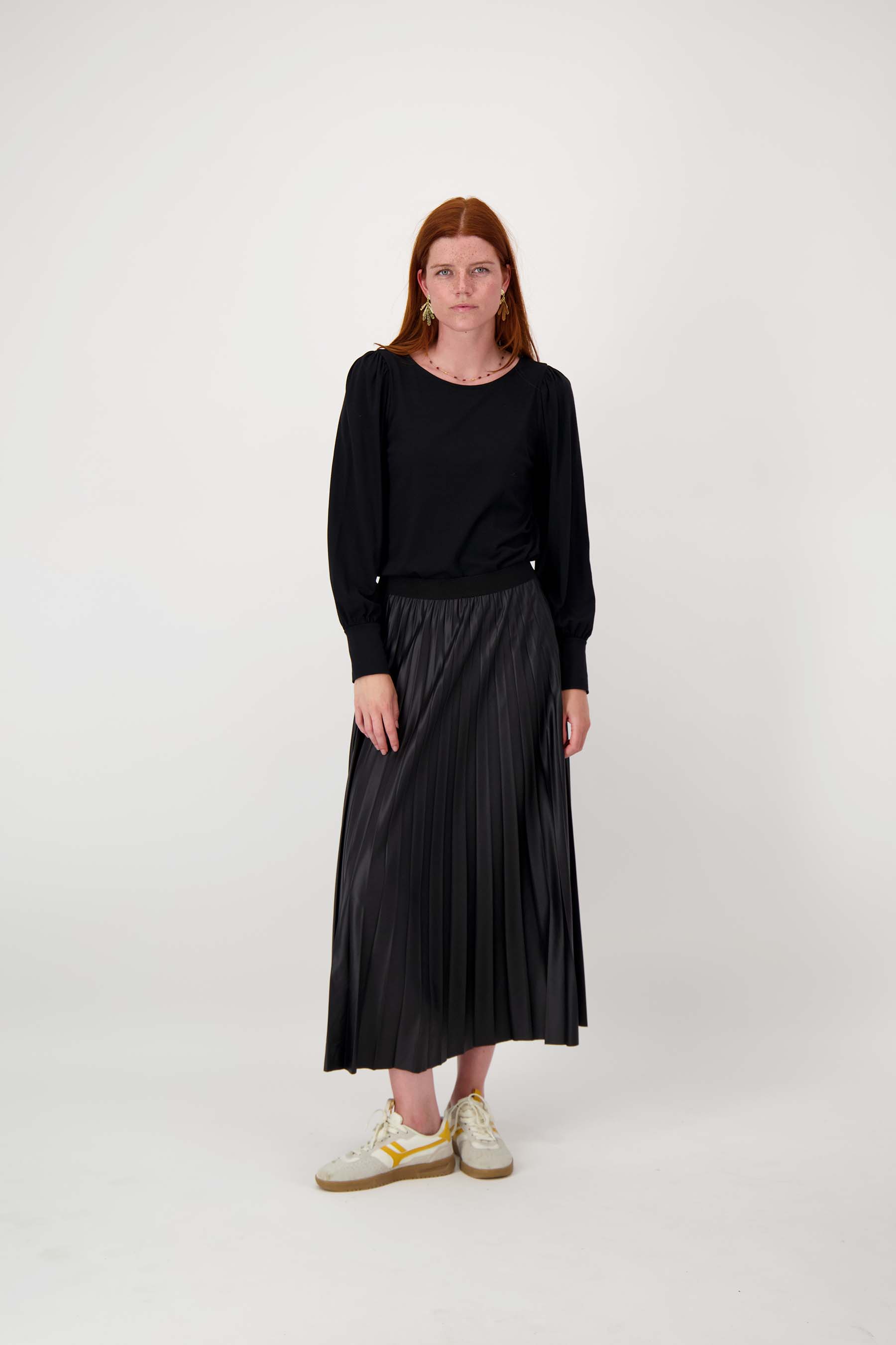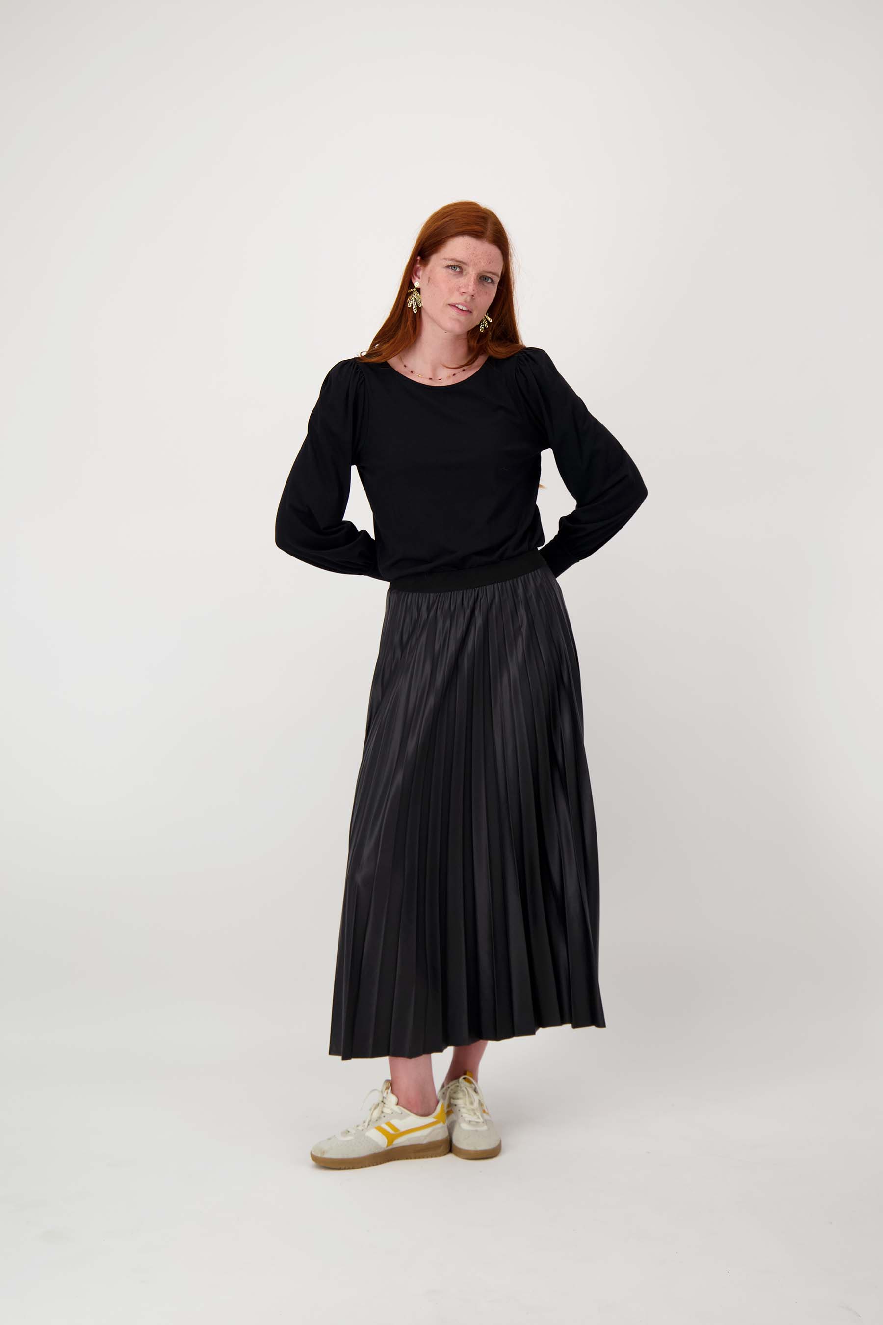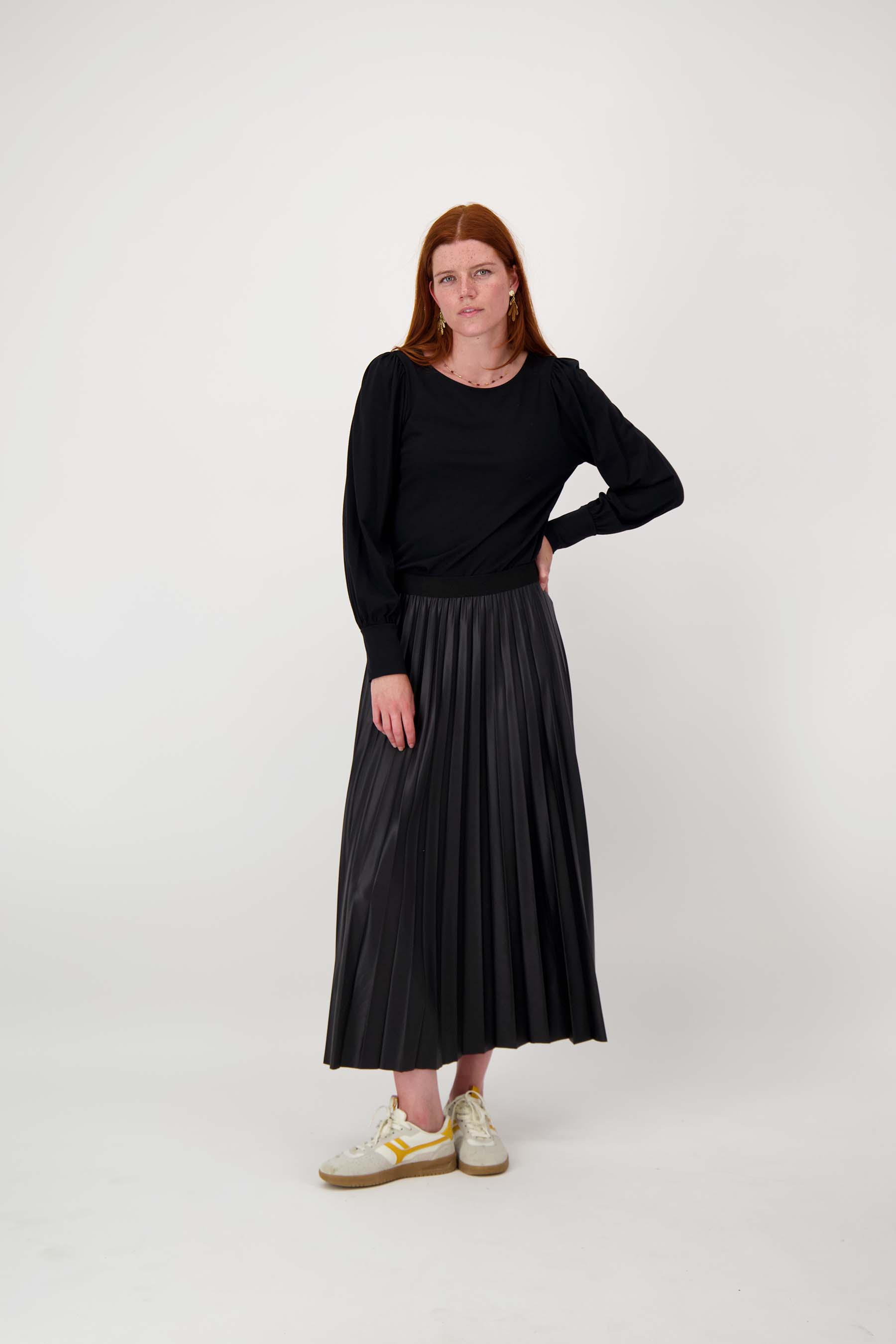 top met boothals lange mouw | zwart