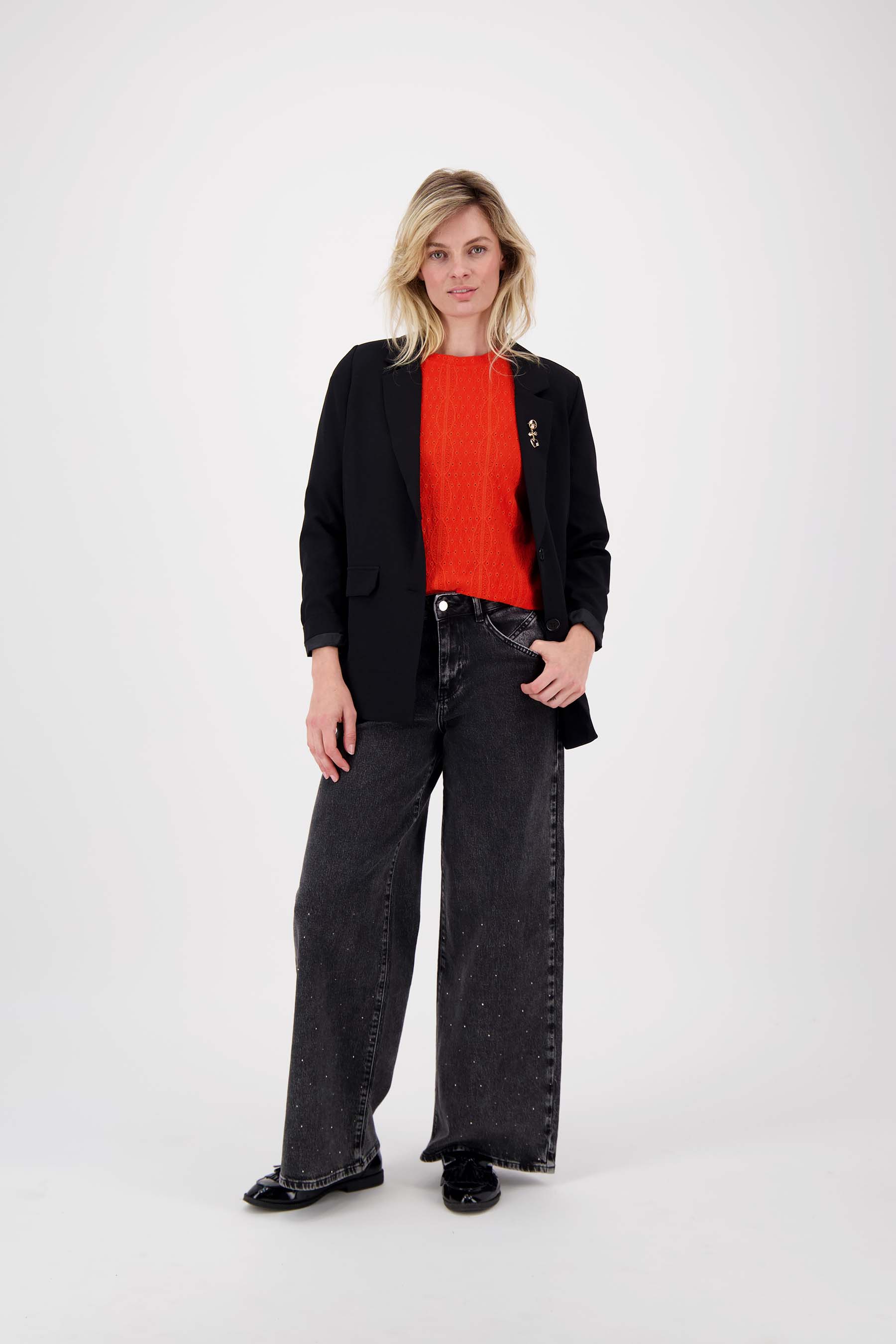 Zusss top van broderie korte mouw oranje rood