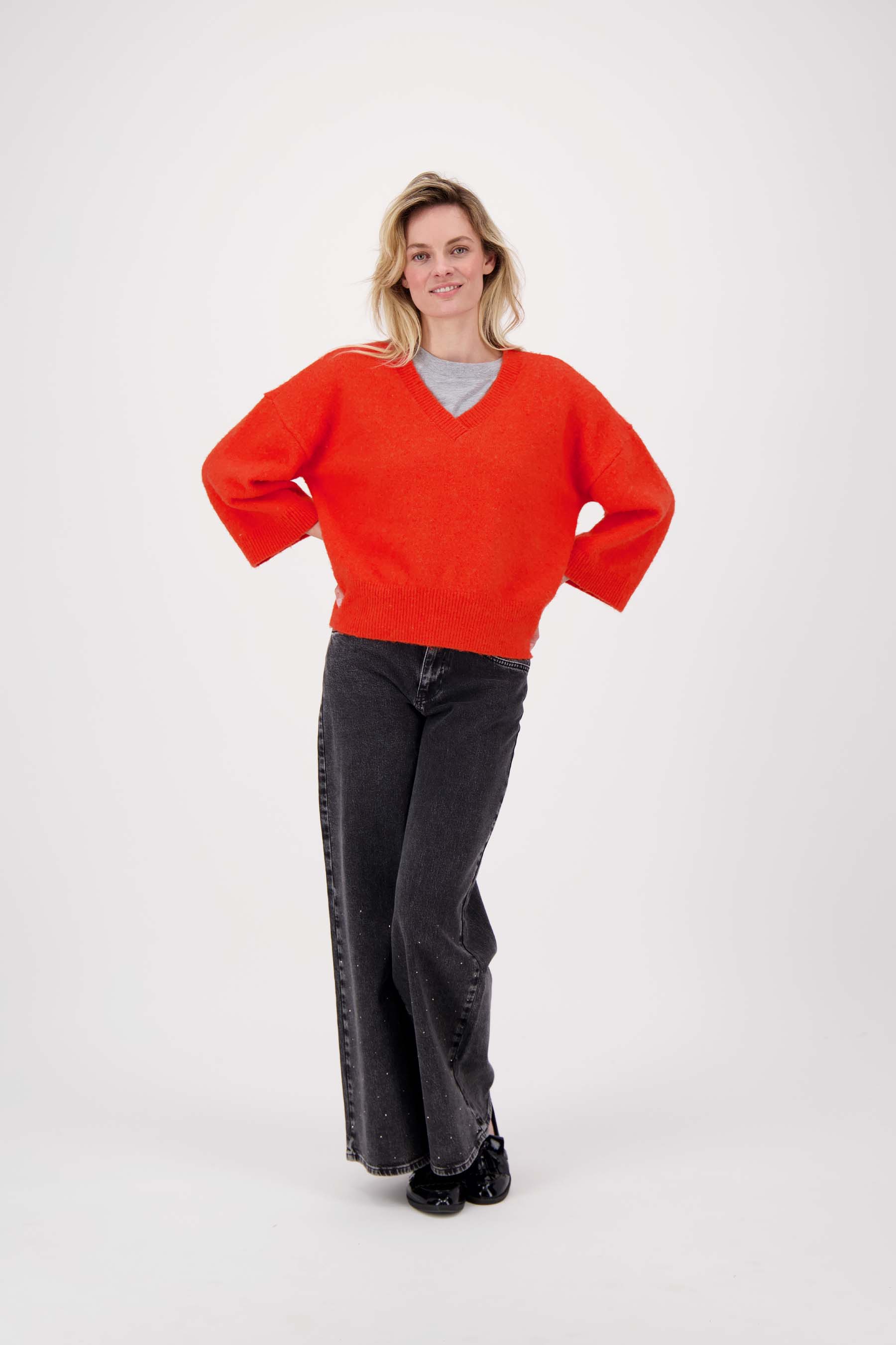 Deze zachtgebreide trui van Zusss is o-zo fijn. Met deze leukerd kun je werkelijk alle kanten op! De oranjerode top heeft een wat wijdere korte mouw en een v-hals. Het perfecte item voor een toffe look! Draag 'm op een jeans of over een Zusss blouse als extra laagje. Deze trui is gemaakt van 92% polyester, 5% wol en 3% elastaan. Neem ook eens een kijkje bij de Zusss sieraden !