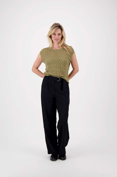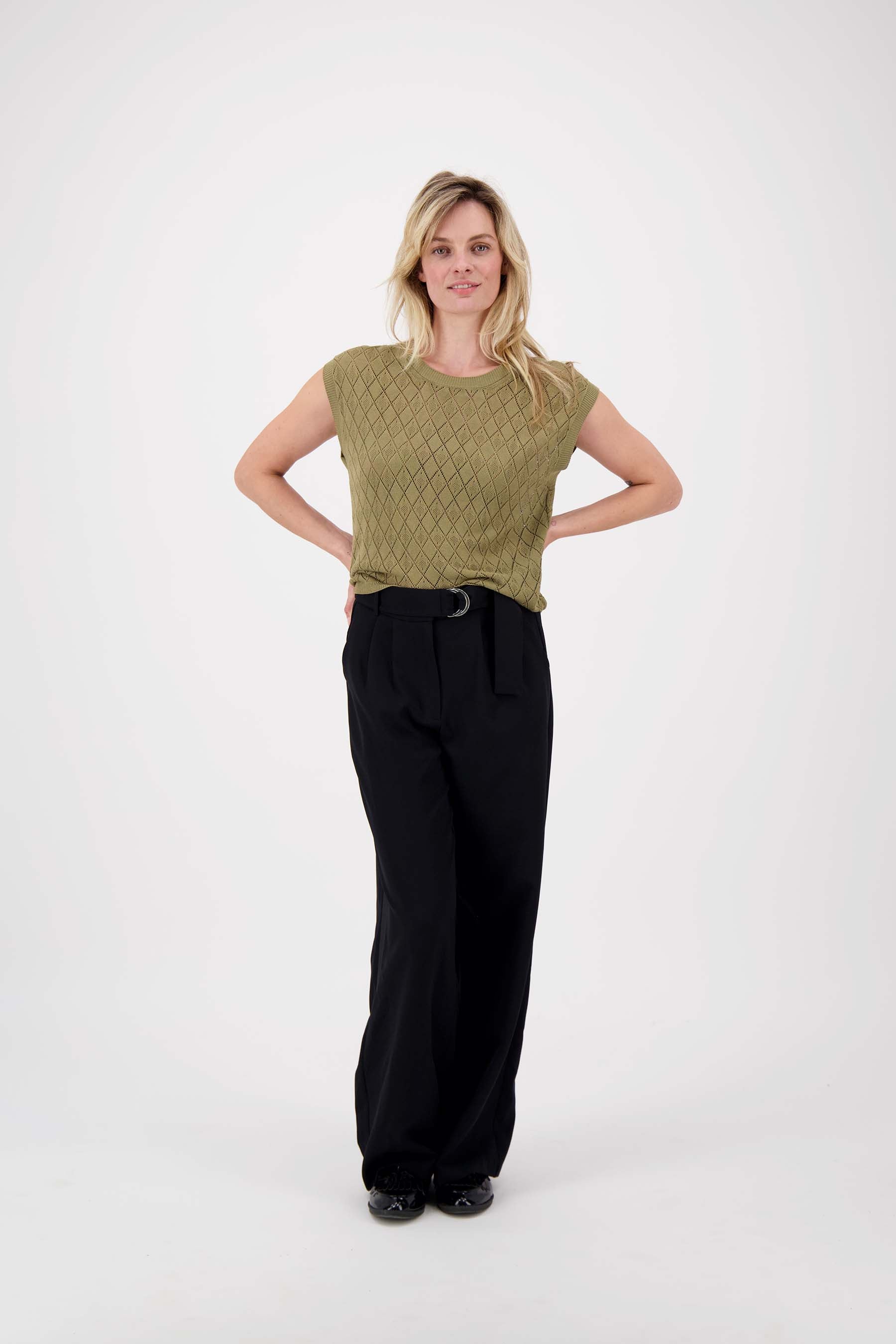 Zusss truitje zonder mouw ajoursteek khakigroen