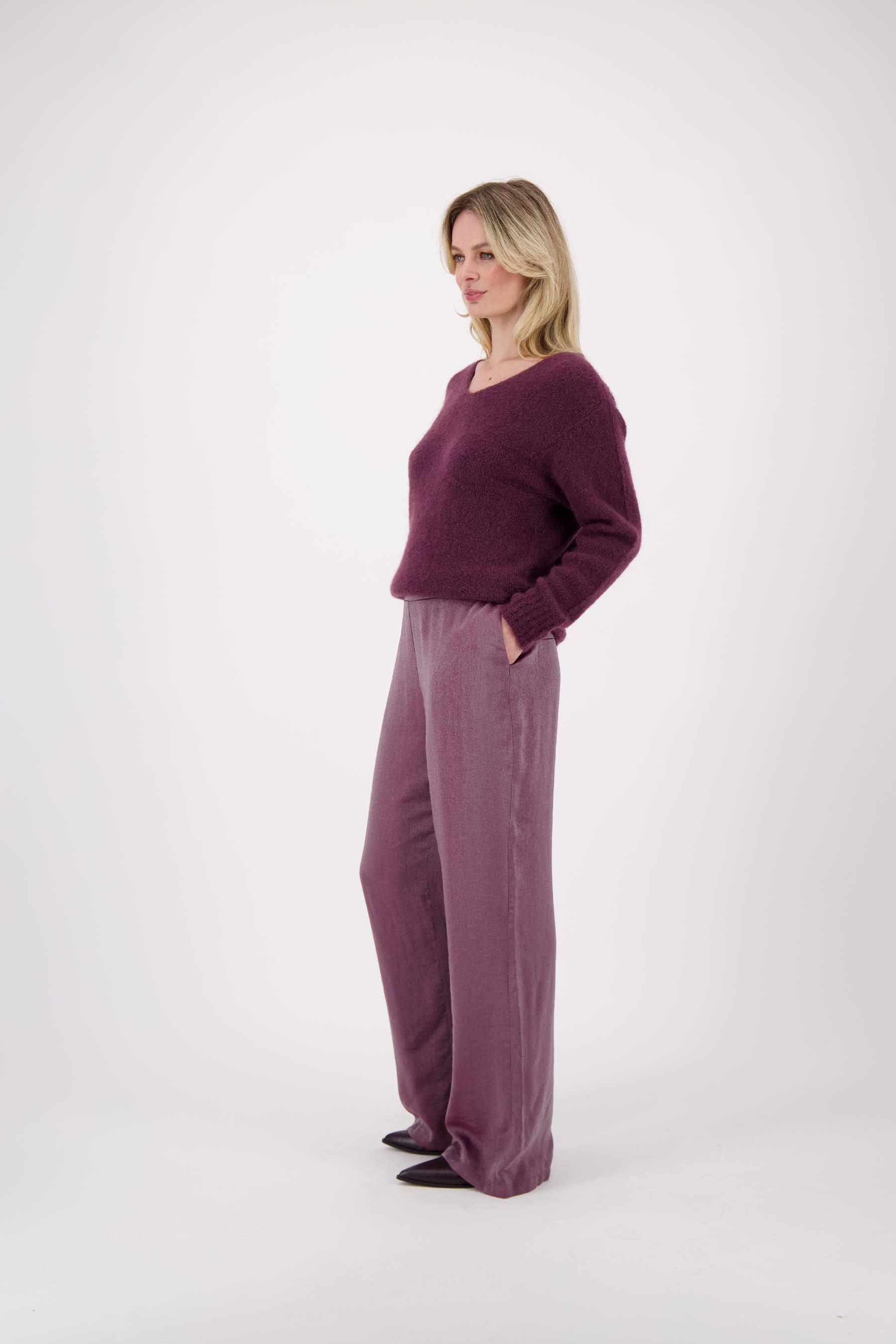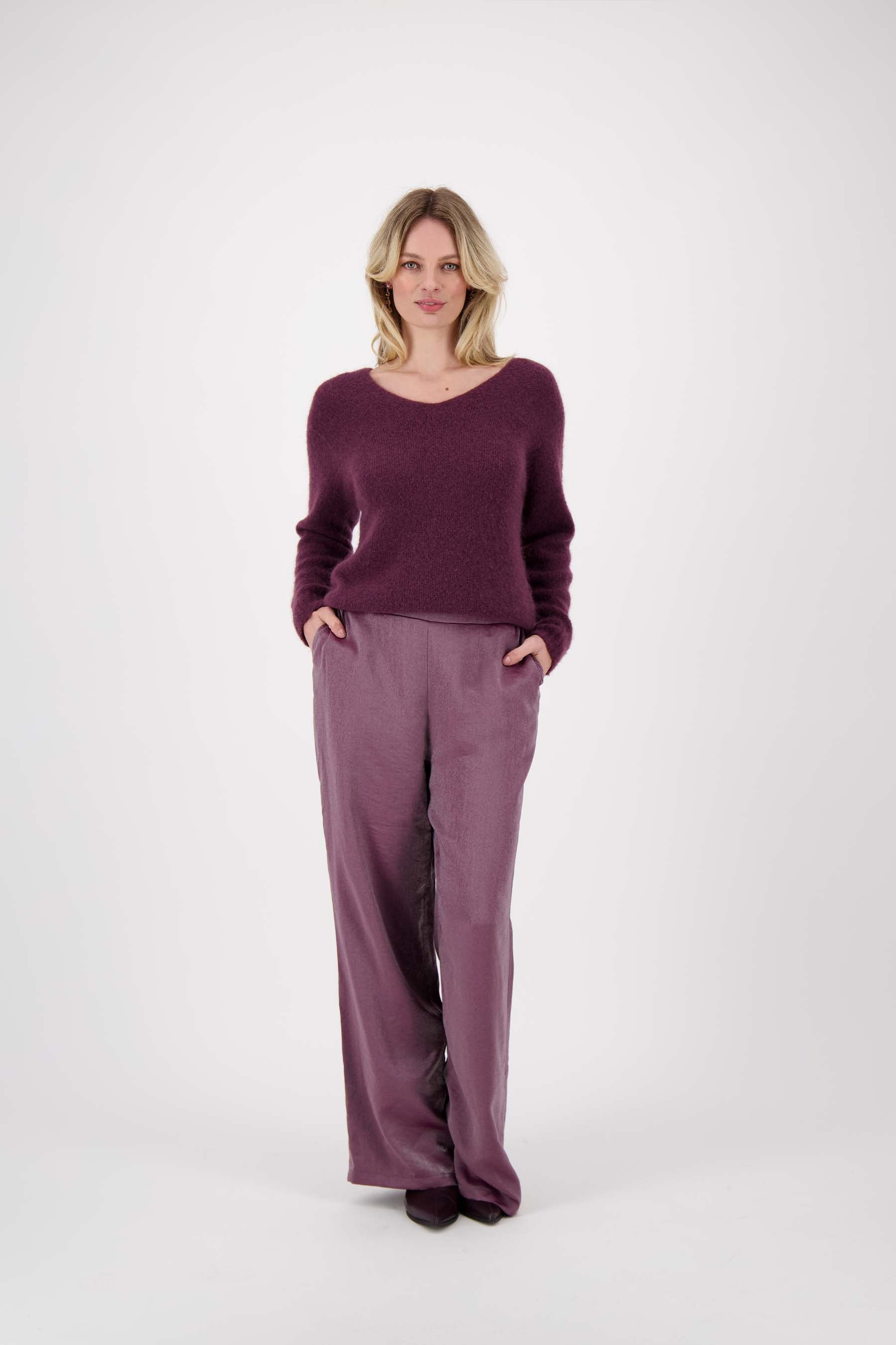 Deze Zusss mohair trui met v-hals is een heerlijk warm en zacht item voor jouw garderobe. De trui heeft een subtiele aubergine kleur die elegantie... Lees meer