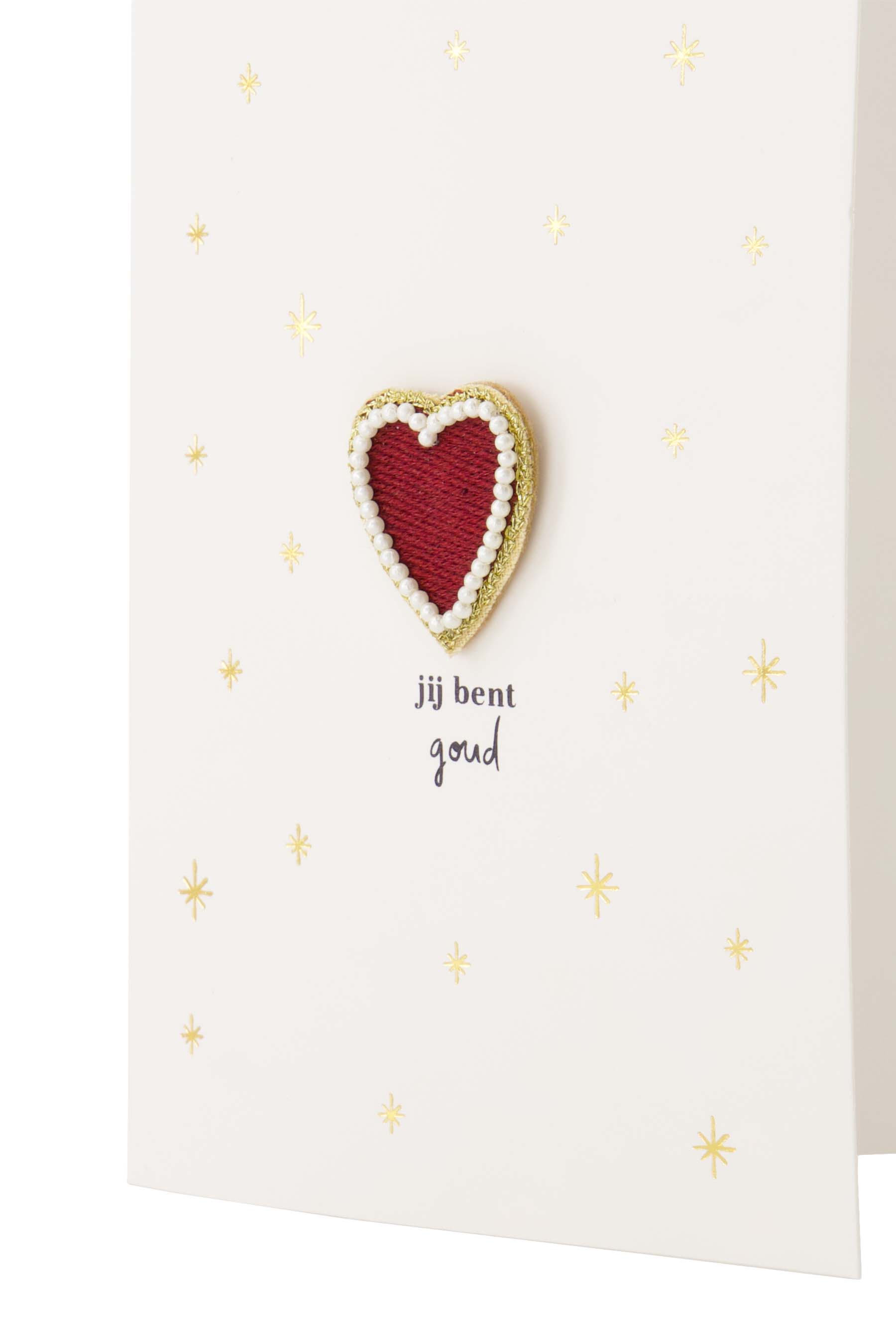 wenskaart broche hartje jij bent goud wit/goud/rood