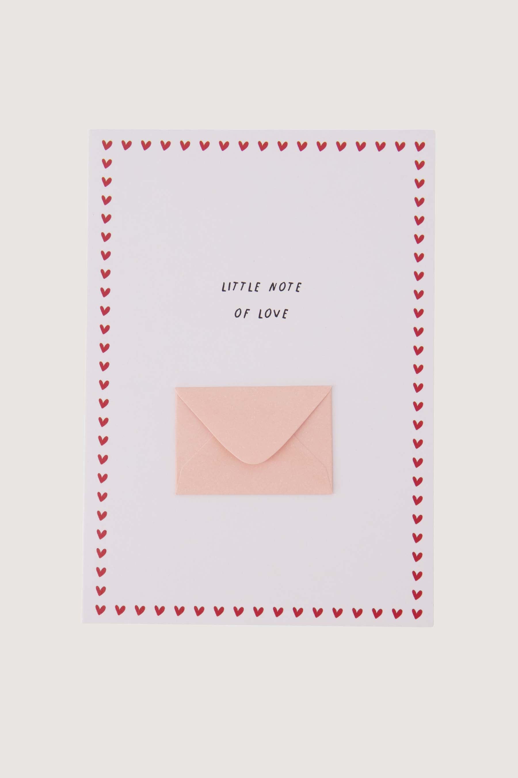De Zusss wenskaart mini met envelop is perfect om je gevoelens te delen. Deze liefdevolle wenskaart mini is gemaakt van hoogwaardig papier en heeft een zachte witte kleur met een roze mini-envelop voor een extra lief detail. Met de rode hartjesrand en de tekst "Little Note of Love" straalt deze wenskaart mini warmte uit. De kaart heeft een compact formaat van 12x15 cm, ideaal om een persoonlijke boodschap op te schrijven. Combineer de wenskaart met een leuk trouw cadeautje om te geven.