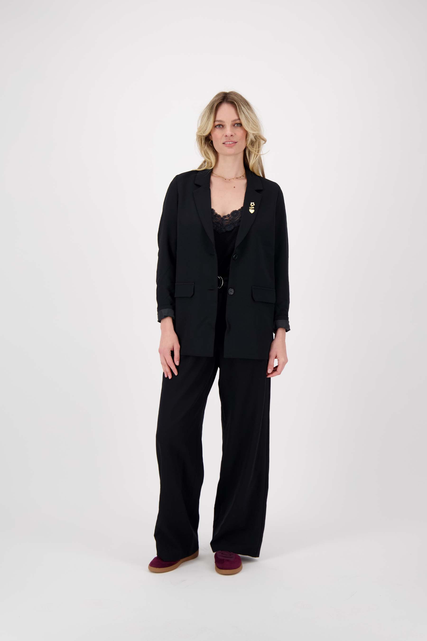 Zusss wijde broek met ceintuur in tijdloos zwart