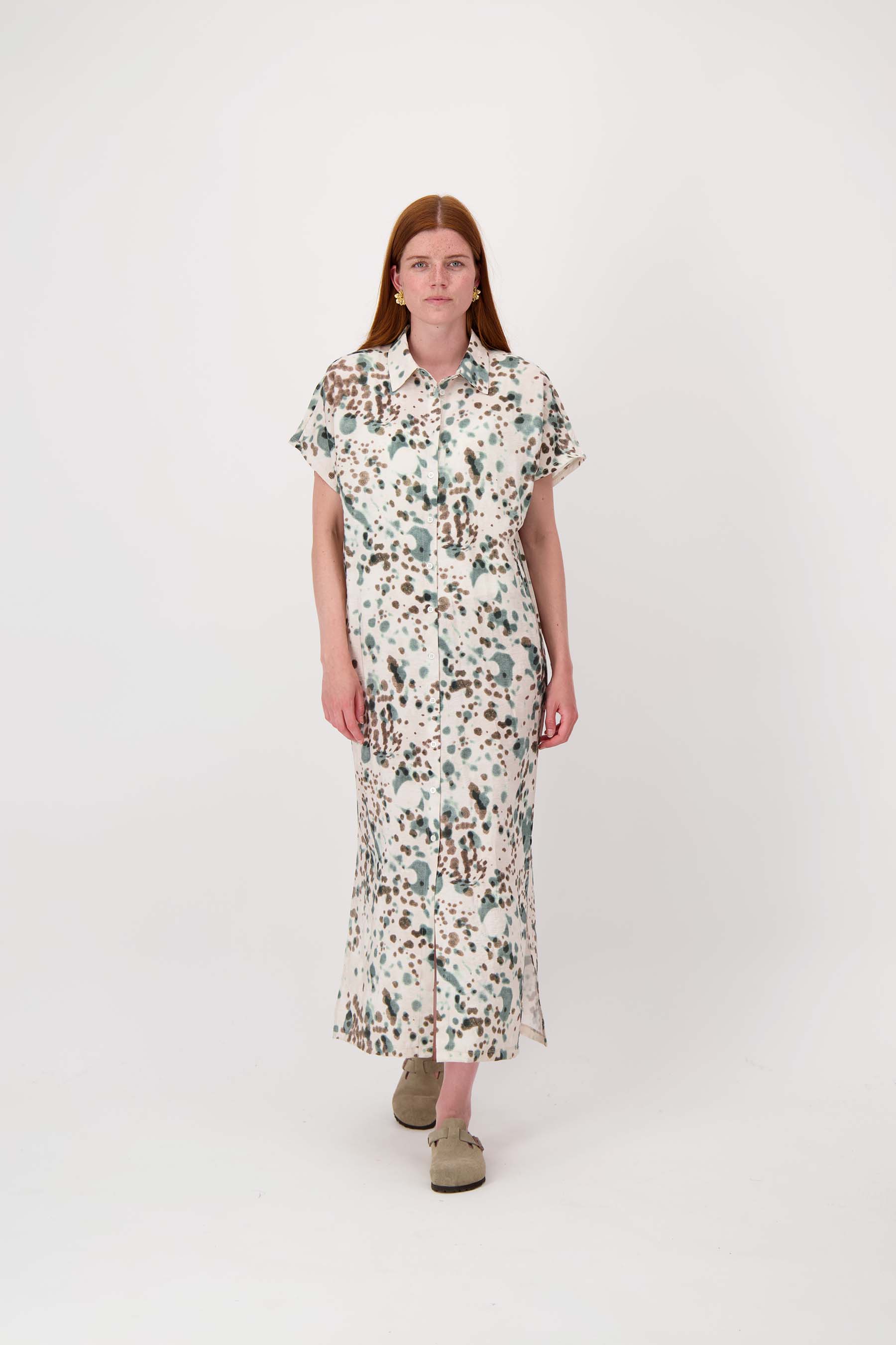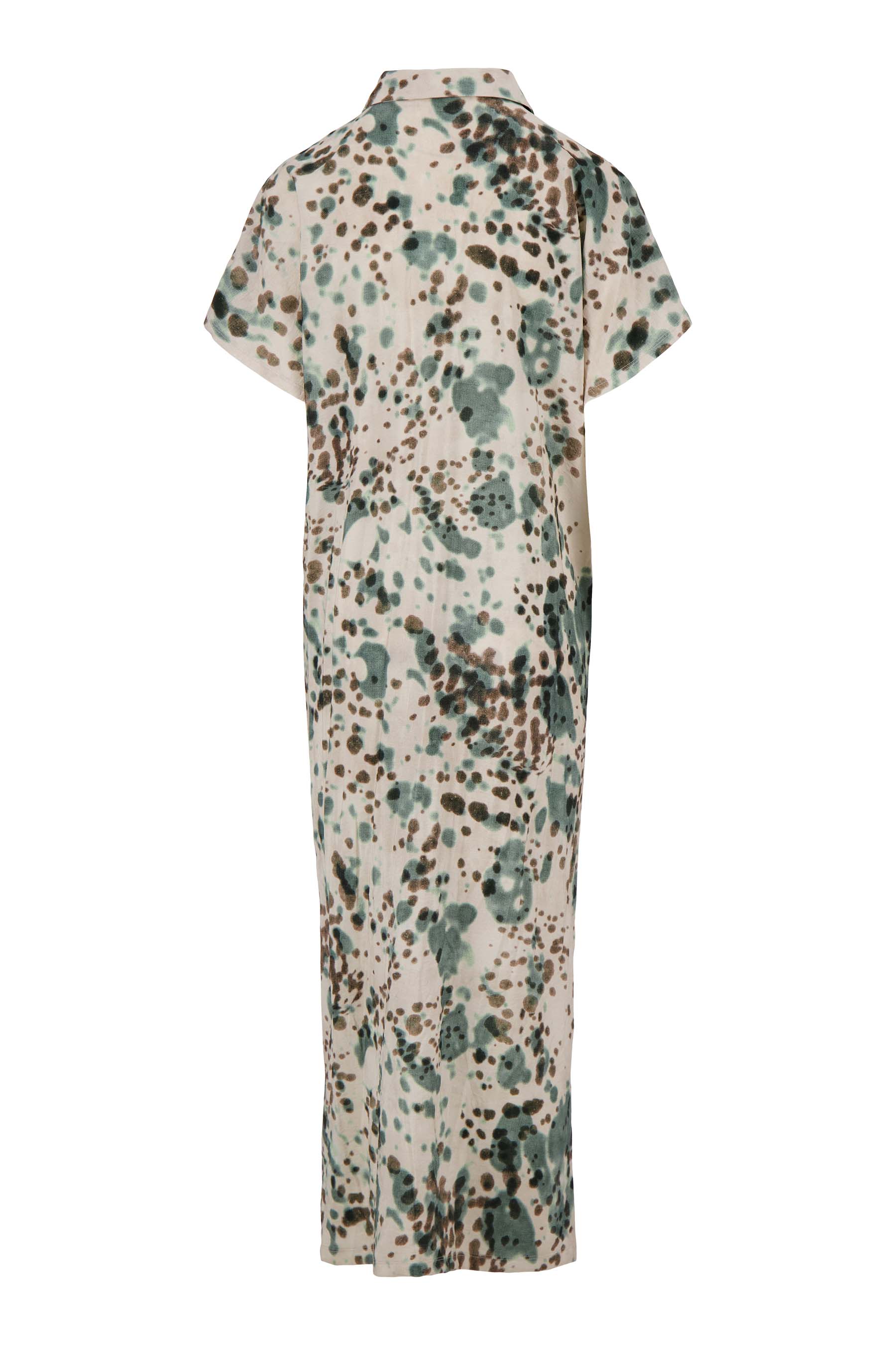 De Zusss wijde jurk met vlekkenprint is dé keuze voor een stijlvolle, ontspannen look. Deze jurk valt lang en soepel, met een speelse vlekkenprint in kit, zwart en silver blue die elke outfit bijzonder maakt. De jurk heeft korte mouwen, een comfortabele pasvorm en een elegante split; perfect om je persoonlijkheid te laten stralen. Combineer hem met je favoriete accessoires voor een complete look.