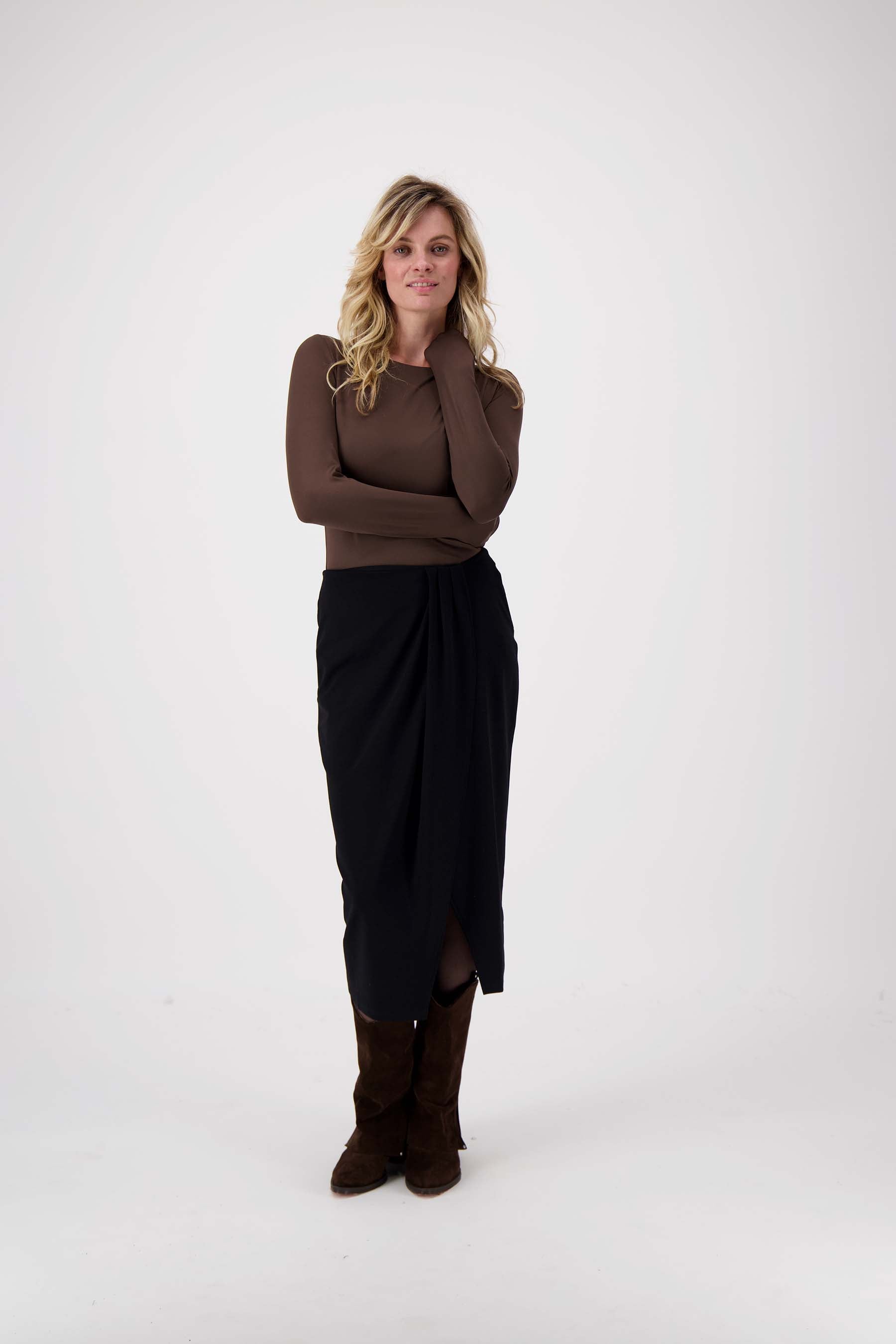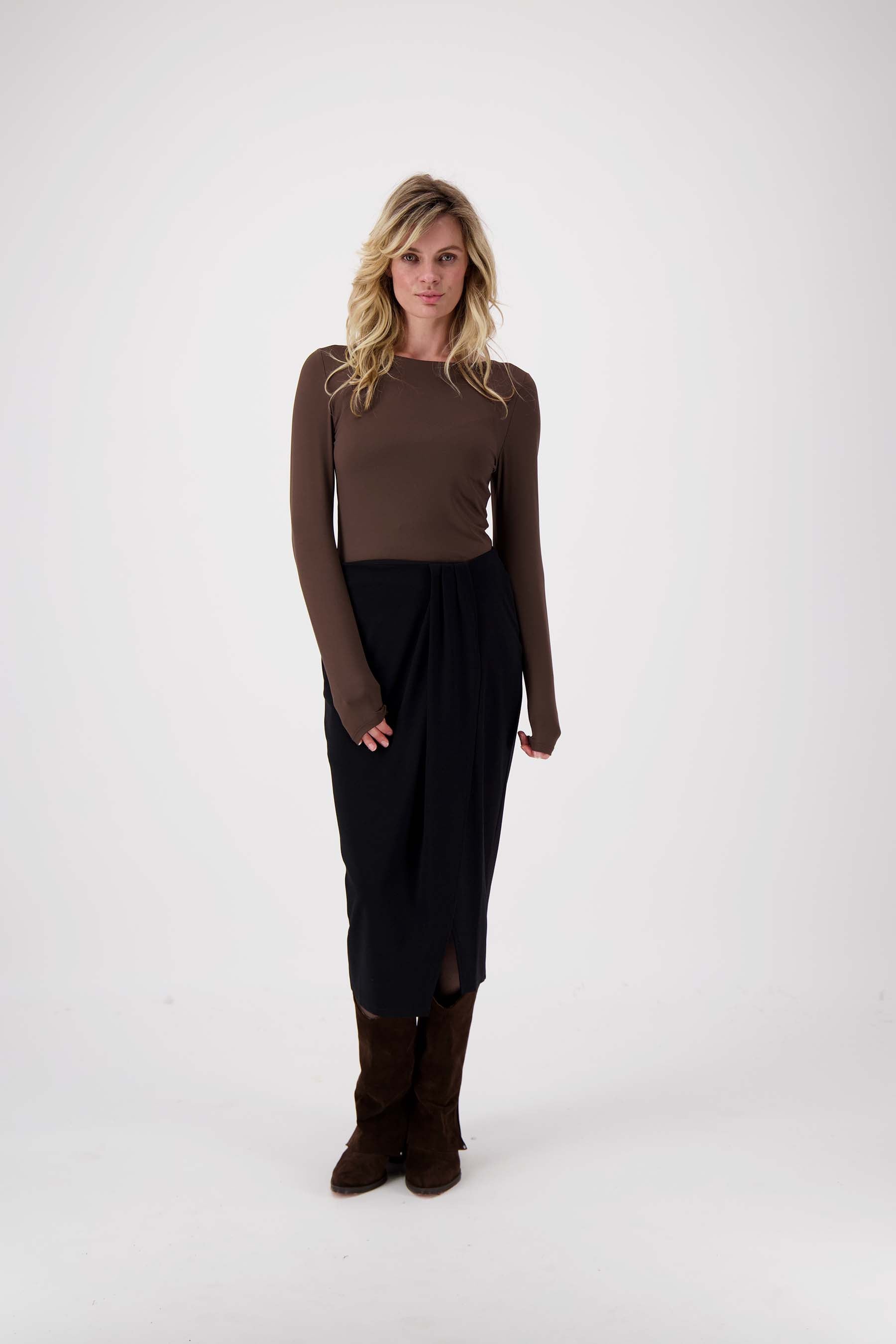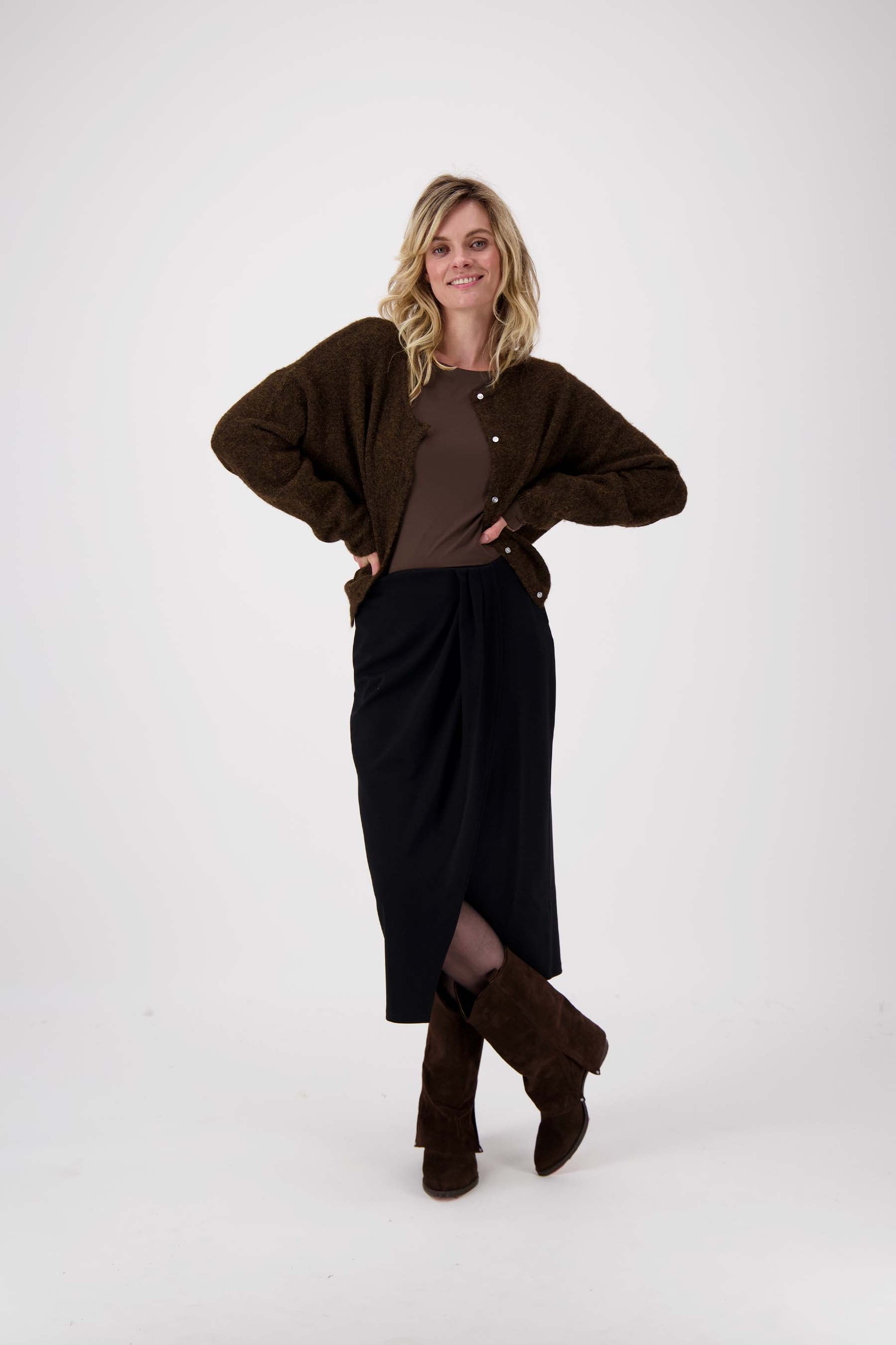 Zusss wikkel rok: tijdloze zwarte rok met subtiele plooi