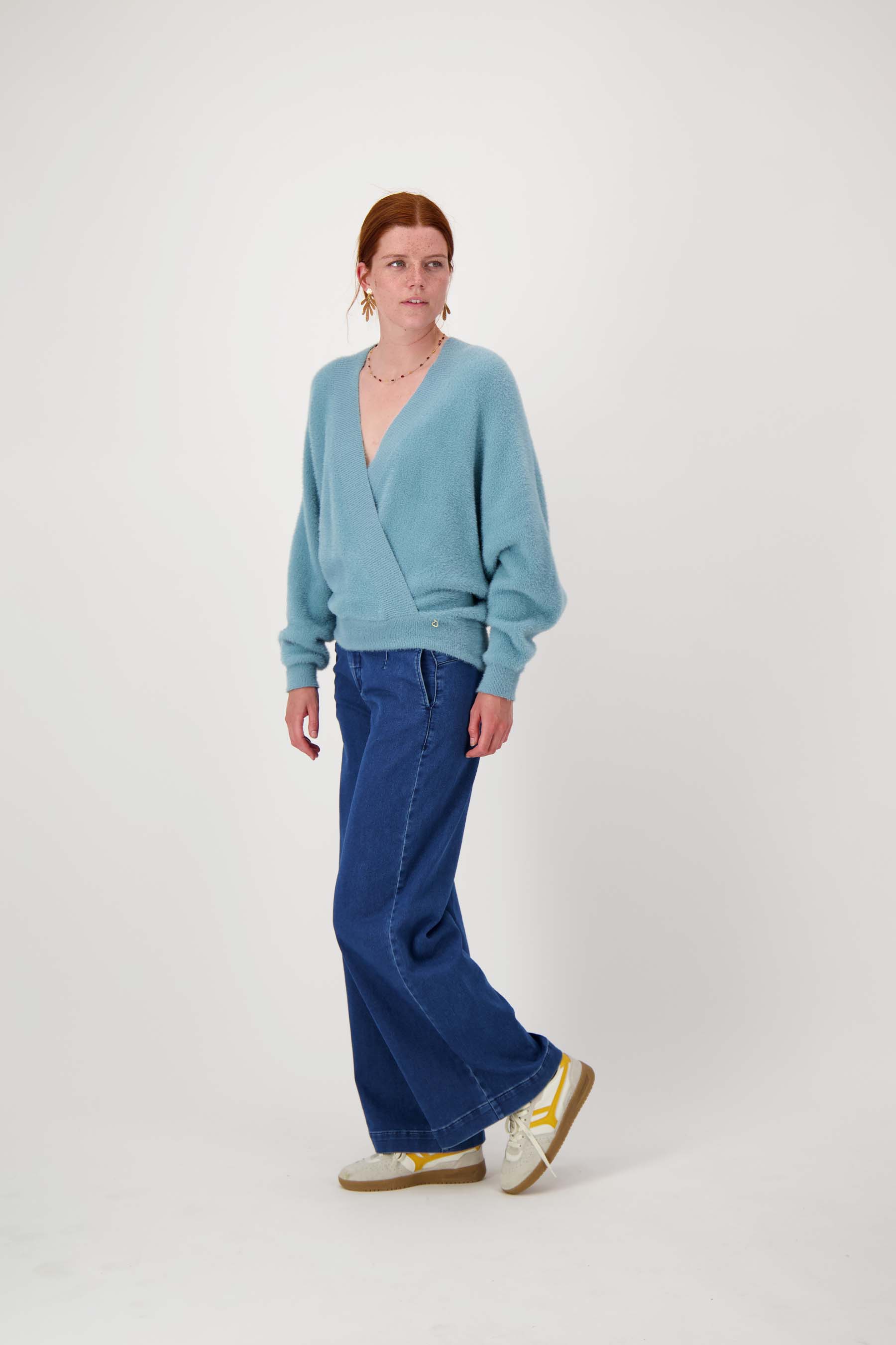 De Zusss wikkel trui in fluffy garen is een heerlijke basic voor jouw garderobe. Deze wikkel trui in fluffy garen omarmt je met een zachte, lichte structuur en een mooie, grijsblauwe kleur die rust uitstraalt. De frisse kleur en het comfortabele model maken deze trui perfect voor elke dag. Dankzij de wikkelstijl is hij eenvoudig te combineren en geeft hij een casual, stoere uitstraling. Deze trui uit de collectie truien biedt je comfort zonder in te leveren op stijl.