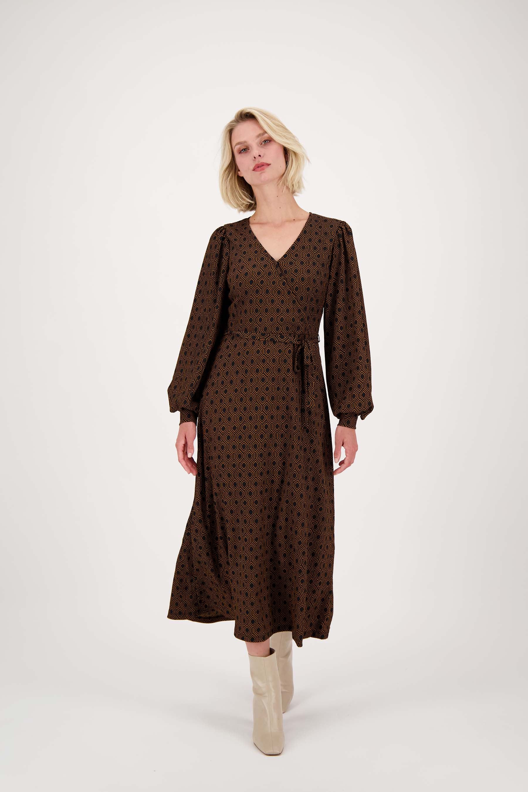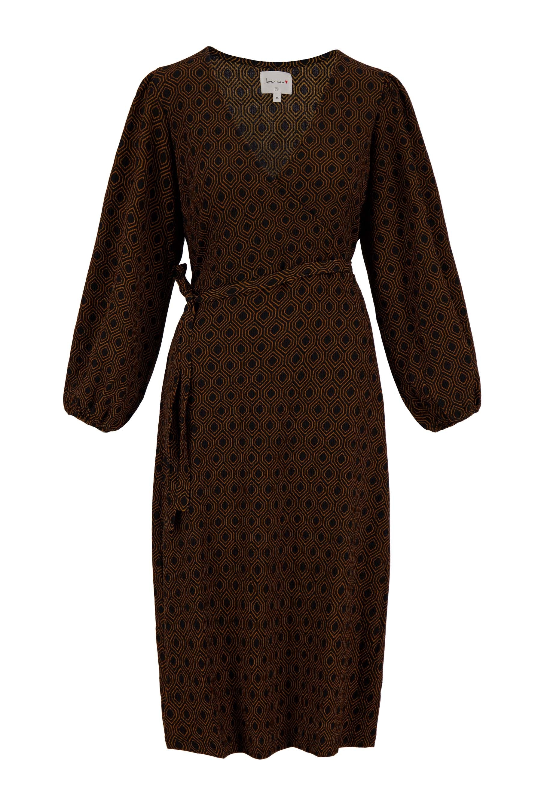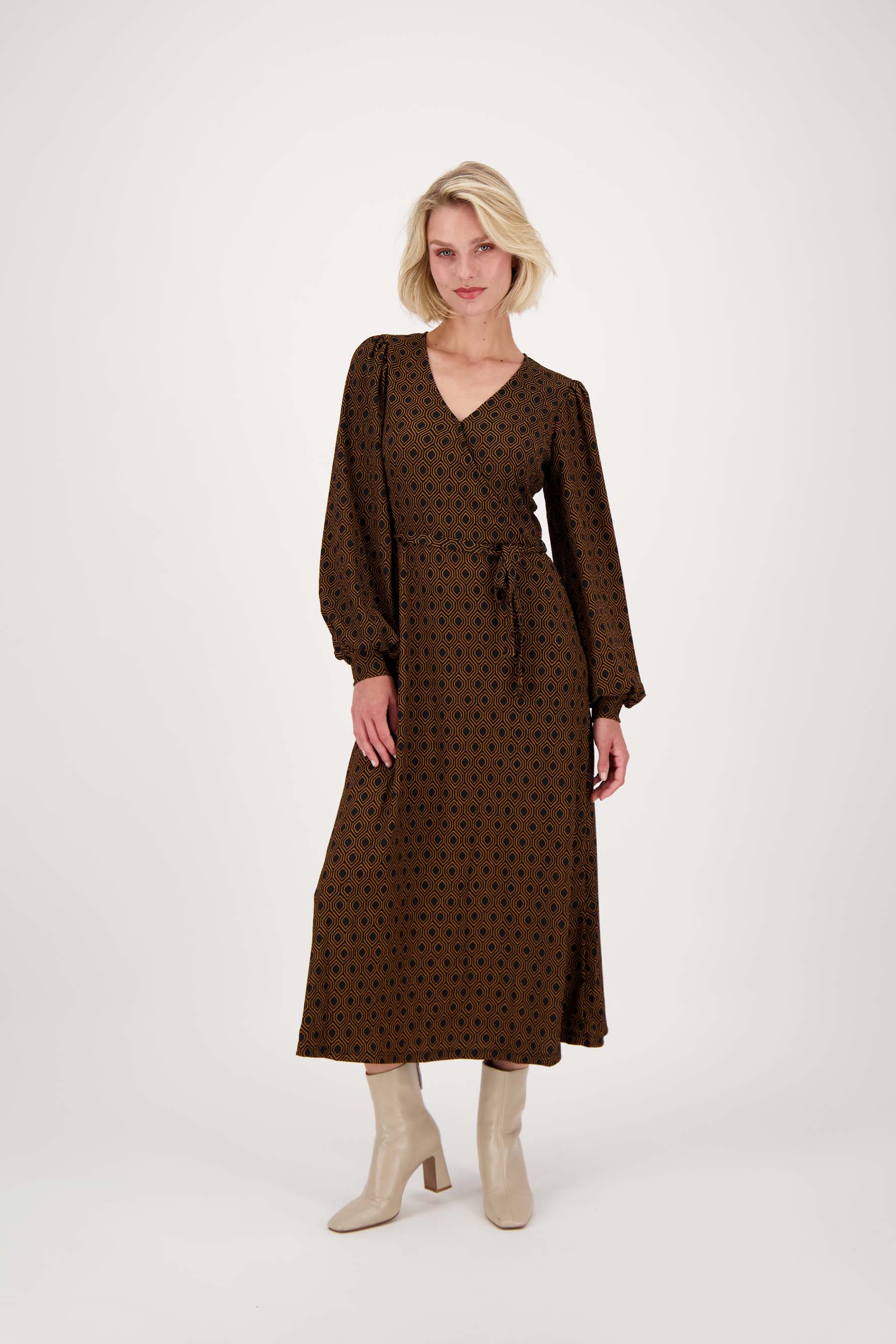 Zusss wikkeljurk met blockprint zwart/camel